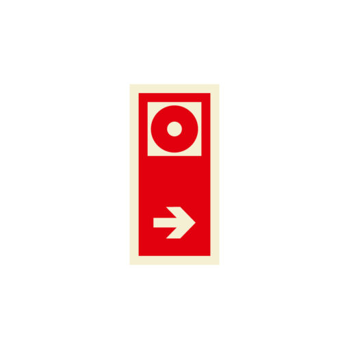 Sinalética / Pictograma BOTAO ALARME BOTONEIRA DE ALARME SETA DIREITA – IN1217 apresentado nas opções de vinil autocolante e PVC.