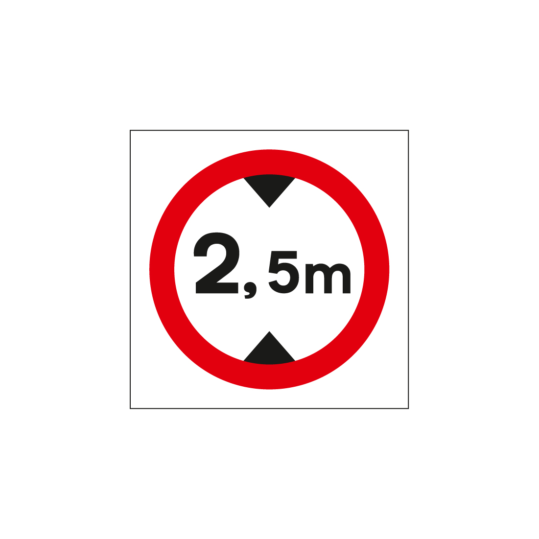 Sinalética / Pictograma ALTURA MÁXIMA 2,50 M – PQ7435 apresentado nas opções de vinil autocolante e PVC.