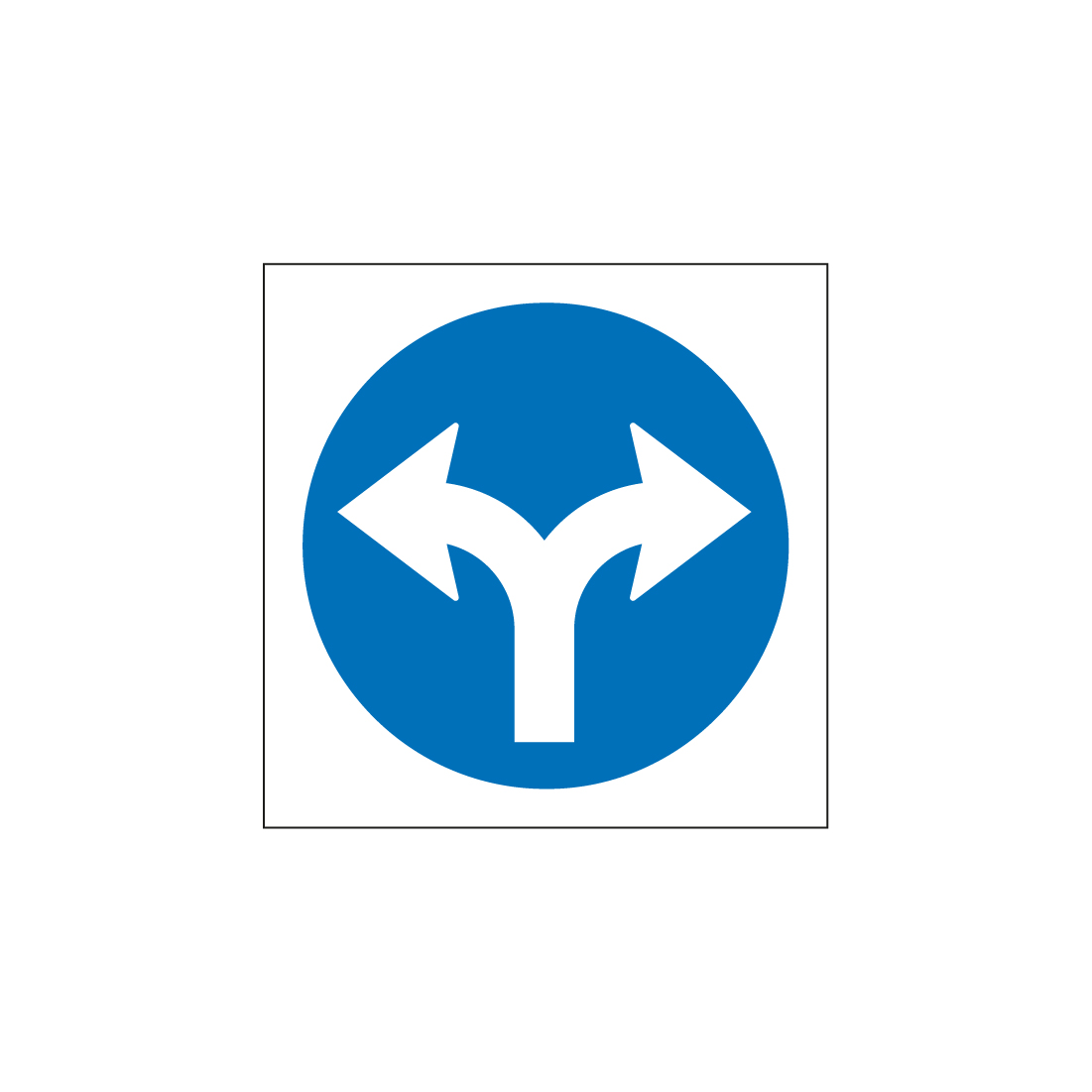 Sinalética / Pictograma OBRIGATÓRIO SEGUIR ESQUERDA OU DIREITA – PQ7405 apresentado nas opções de vinil autocolante e PVC.
