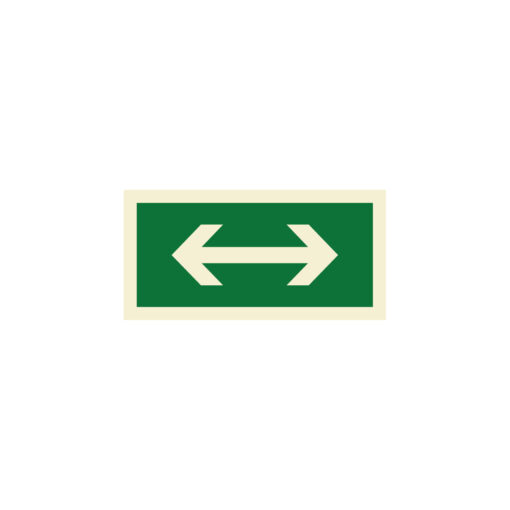 Sinalética / Pictograma SETA SAÍDA DIREITA ESQUERDA – EM2002 apresentado nas opções de vinil autocolante e PVC.